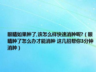 目前大家应该是对眼睛肿了怎么办才能消肿 这几招帮你3分钟消肿比较感兴趣的,所以今天小编CC就来为大家整理了一些关于眼睛肿了怎么办才能消肿 这几招帮你3分钟消肿方面的相关知识来分享给大家,希望大家会喜欢哦。