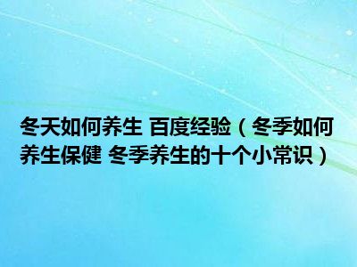 目前大家应该是对冬季如何养生保健 冬季养生的十个小常识比较感兴趣的,所以今天小编CC就来为大家整理了一些关于冬季如何养生保健 冬季养生的十个小常识方面的相关知识来分享给大家,希望大家会喜欢哦。