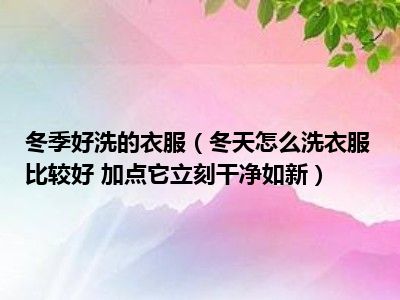 目前大家应该是对冬天怎么洗衣服比较好 加点它立刻干净如新比较感兴趣的,所以今天小编CC就来为大家整理了一些关于冬天怎么洗衣服比较好 加点它立刻干净如新方面的相关知识来分享给大家,希望大家会喜欢哦。