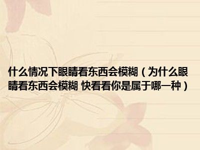目前大家应该是对为什么眼睛看东西会模糊 快看看你是属于哪一种比较感兴趣的,所以今天小编CC就来为大家整理了一些关于为什么眼睛看东西会模糊 快看看你是属于哪一种方面的相关知识来分享给大家,希望大家会喜欢哦。
