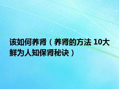 目前大家应该是对养肾的方法 10大鲜为人知保肾秘诀比较感兴趣的,所以今天小编CC就来为大家整理了一些关于养肾的方法 10大鲜为人知保肾秘诀方面的相关知识来分享给大家,希望大家会喜欢哦。