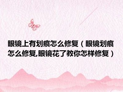 目前大家应该是对眼镜划痕怎么修复,眼镜花了教你怎样修复比较感兴趣的,所以今天小编CC就来为大家整理了一些关于眼镜划痕怎么修复,眼镜花了教你怎样修复方面的相关知识来分享给大家,希望大家会喜欢哦。
