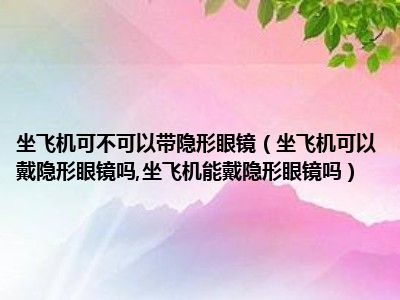 目前大家应该是对坐飞机可以戴隐形眼镜吗,坐飞机能戴隐形眼镜吗比较感兴趣的,所以今天小编CC就来为大家整理了一些关于坐飞机可以戴隐形眼镜吗,坐飞机能戴隐形眼镜吗方面的相关知识来分享给大家,希望大家会喜欢哦。
