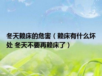 目前大家应该是对赖床有什么坏处 冬天不要再赖床了比较感兴趣的,所以今天小编CC就来为大家整理了一些关于赖床有什么坏处 冬天不要再赖床了方面的相关知识来分享给大家,希望大家会喜欢哦。