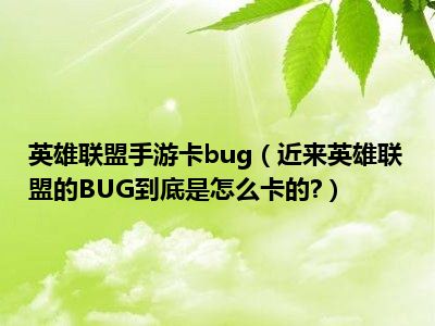 相信目前很多小伙伴对于近来英雄联盟的BUG到底是怎么卡的?都比较感兴趣,那么小编今天在网上也是收集了一些与近来英雄联盟的BUG到底是怎么卡的?相关的信息来分享给大家,希望能够帮助到大家哦。