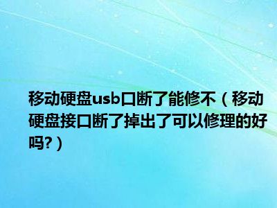 相信目前很多小伙伴对于移动硬盘接口断了掉出了可以修理的好吗?都比较感兴趣,那么小编今天在网上也是收集了一些与移动硬盘接口断了掉出了可以修理的好吗?相关的信息来分享给大家,希望能够帮助到大家哦。