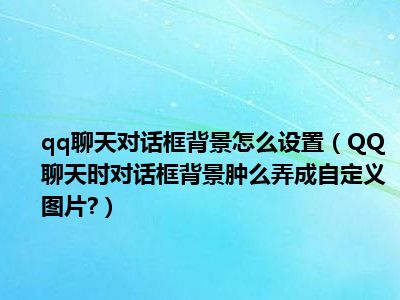 相信目前很多小伙伴对于QQ聊天时对话框背景肿么弄成自定义图片?都比较感兴趣,那么小编今天在网上也是收集了一些与QQ聊天时对话框背景肿么弄成自定义图片?相关的信息来分享给大家,希望能够帮助到大家哦。