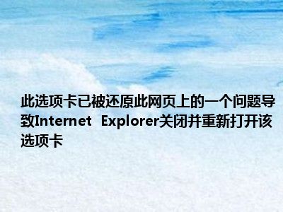 12、 四、ie内核出错导致系统提示“此选项卡已经恢复,此网页的问题导致INTERNET EXPLORER关闭并重新打开该选项卡”。
