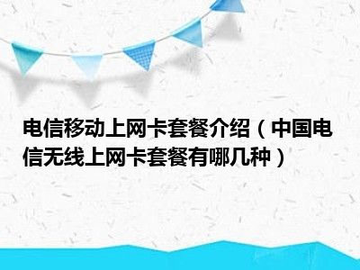 相信目前很多小伙伴对于中国电信无线上网卡套餐有哪几种都比较感兴趣,那么小编今天在网上也是收集了一些与中国电信无线上网卡套餐有哪几种相关的信息来分享给大家,希望能够帮助到大家哦。