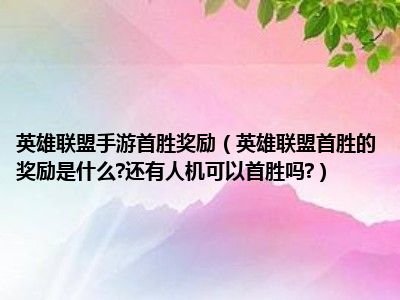 相信目前很多小伙伴对于英雄联盟首胜的奖励是什么?还有人机可以首胜吗?都比较感兴趣,那么小编今天在网上也是收集了一些与英雄联盟首胜的奖励是什么?还有人机可以首胜吗?相关的信息来分享给大家,希望能够帮助到大家哦。