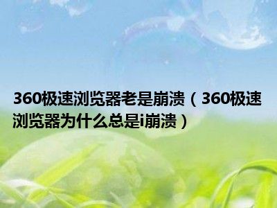 相信目前很多小伙伴对于360极速浏览器为什么总是i崩溃都比较感兴趣,那么小编今天在网上也是收集了一些与360极速浏览器为什么总是i崩溃相关的信息来分享给大家,希望能够帮助到大家哦。