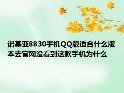 相信目前很多小伙伴对于诺基亚8830手机QQ版本 适合什么版本,我去官方没看到这个手机的,这是为什么啊?都比较感兴趣,那么小编今天在网上也是收集了一些与诺基亚8830手机QQ版本 适合什么版本,我去官方没看到这个手机的,这是为什么啊?相关的信息来分享给大家,希望能够帮助到大家哦。