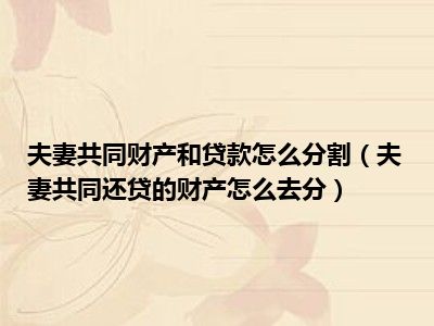 目前大家应该是对夫妻共同还贷的财产怎么去分比较感兴趣的,所以今天CC就来为大家整理了一些关于夫妻共同还贷的财产怎么去分方面的相关知识来分享给大家,希望大家会喜欢哦。
