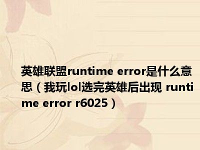 相信目前很多小伙伴对于我玩lol选完英雄后出现 runtime error r6025都比较感兴趣,那么小编今天在网上也是收集了一些与我玩lol选完英雄后出现 runtime error r6025相关的信息来分享给大家,希望能够帮助到大家哦。