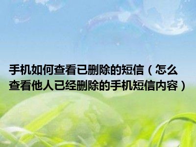 相信目前很多小伙伴对于怎么查看他人已经删除的手机短信内容都比较感兴趣,那么小编今天在网上也是收集了一些与怎么查看他人已经删除的手机短信内容相关的信息来分享给大家,希望能够帮助到大家哦。