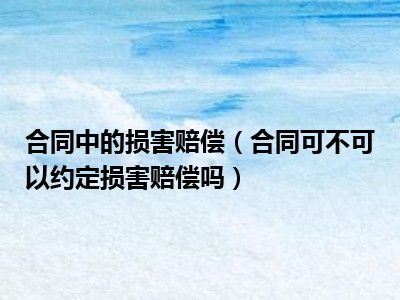 目前大家应该是对合同可不可以约定损害赔偿吗比较感兴趣的,所以今天CC就来为大家整理了一些关于合同可不可以约定损害赔偿吗方面的相关知识来分享给大家,希望大家会喜欢哦。
