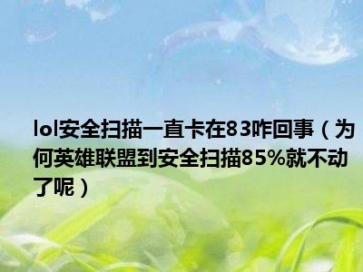 导读相信目前很多小伙伴对于为何英雄联盟到安全扫描85%就不动了呢都比较感兴趣,那么小编今天在网上也是收集了一些与为何英雄联盟到安全扫描85...