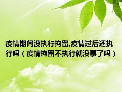 目前大家应该是对疫情拘留不执行就没事了吗比较感兴趣的,所以今天CC就来为大家整理了一些关于疫情拘留不执行就没事了吗方面的相关知识来分享给大家,希望大家会喜欢哦。