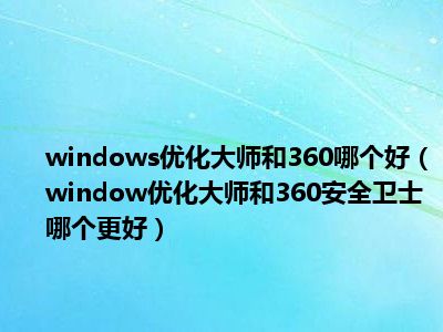 相信目前很多小伙伴对于window优化大师和360安全卫士哪个更好?都比较感兴趣,那么小编今天在网上也是收集了一些与window优化大师和360安全卫士哪个更好?相关的信息来分享给大家,希望能够帮助到大家哦。