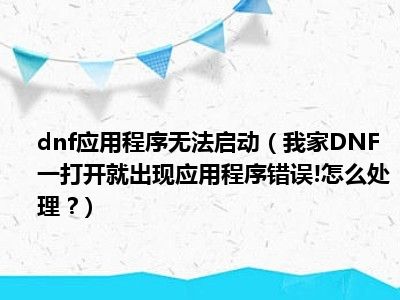 相信目前很多小伙伴对于我家DNF一打开就出现应用程序错误!怎么处理 ?都比较感兴趣,那么小编今天在网上也是收集了一些与我家DNF一打开就出现应用程序错误!怎么处理 ?相关的信息来分享给大家,希望能够帮助到大家哦。