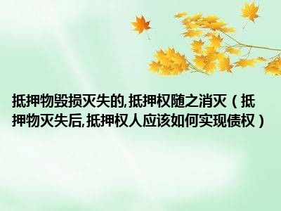 目前大家应该是对抵押物灭失后,抵押权人应该如何实现债权比较感兴趣的,所以今天CC就来为大家整理了一些关于抵押物灭失后,抵押权人应该如何实现债权方面的相关知识来分享给大家,希望大家会喜欢哦。