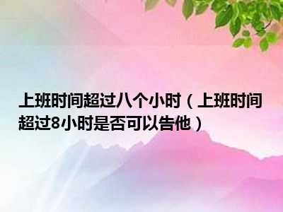 目前大家应该是对上班时间超过8小时是否可以告他比较感兴趣的,所以今天CC就来为大家整理了一些关于上班时间超过8小时是否可以告他方面的相关知识来分享给大家,希望大家会喜欢哦。