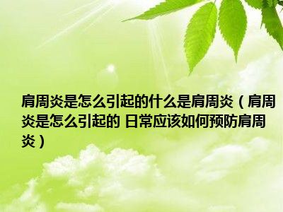 目前大家应该是对肩周炎是怎么引起的 日常应该如何预防肩周炎比较感兴趣的,所以今天小编CC就来为大家整理了一些关于肩周炎是怎么引起的 日常应该如何预防肩周炎方面的相关知识来分享给大家,希望大家会喜欢哦。