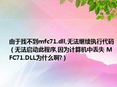 相信目前很多小伙伴对于无法启动此程序,因为计算机中丢失 MFC71.DLL为什么啊?都比较感兴趣,那么小编今天在网上也是收集了一些与无法启动此程序,因为计算机中丢失 MFC71.DLL为什么啊?相关的信息来分享给大家,希望能够帮助到大家哦。