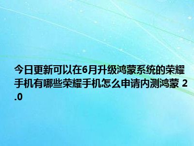 目前上述的内容应该能够为大家解答出大家对于可以在6月升级鸿蒙系统的荣耀手机有哪些,荣耀手机怎么申请内测鸿蒙 2.0的疑惑了,所以如果大家还想要了解更多的知识内容,也可以关注本站其他文章进行了解哦。