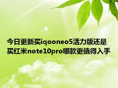 目前上述的内容应该能够为大家解答出大家对于买iqooneo5活力版还是买红米note10pro,哪款更值得入手的疑惑了,所以如果大家还想要了解更多的知识内容,也可以关注本站其他文章进行了解哦。