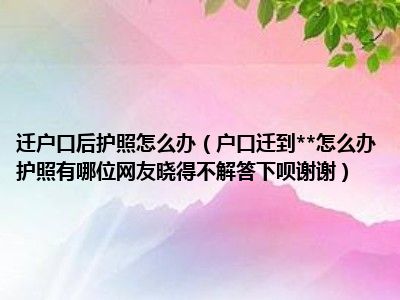 导读 目前大家应该是对户口迁到**怎么办护照有哪位网友晓得不,解答下呗,谢谢!比较感兴趣的,所以今天好房网小编CC就来为大家整理了一些关于户