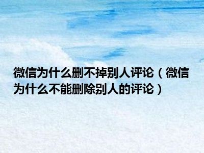 导读 1、微信为什么不能删除别人的评论2、微信不能删除别人的评论是因为微信团队没有开发这个功能,所以不能删除别人的评论。3、微信是腾讯于201