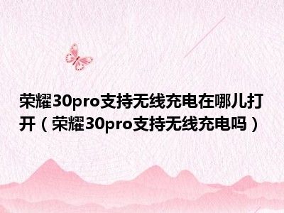 导读 1、荣耀30pro支持无线充电吗2、荣耀30pro手机支持无线充电,最多支持15W无线快充,兼容Qi协议。无线充电底座不是标配,需要单独购买。然后