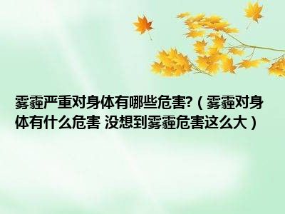目前大家应该是对雾霾对身体有什么危害 没想到雾霾危害这么大比较感兴趣的,所以今天小编CC就来为大家整理了一些关于雾霾对身体有什么危害 没想到雾霾危害这么大方面的相关知识来分享给大家,希望大家会喜欢哦。