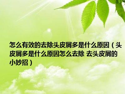 目前大家应该是对头皮屑多是什么原因怎么去除 去头皮屑的小妙招比较感兴趣的,所以今天小编CC就来为大家整理了一些关于头皮屑多是什么原因怎么去除 去头皮屑的小妙招方面的相关知识来分享给大家,希望大家会喜欢哦。