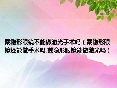 目前大家应该是对戴隐形眼镜还能做手术吗,戴隐形眼镜能做激光吗比较感兴趣的,所以今天小编CC就来为大家整理了一些关于戴隐形眼镜还能做手术吗,戴隐形眼镜能做激光吗方面的相关知识来分享给大家,希望大家会喜欢哦。