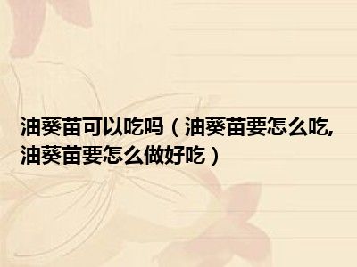 目前大家应该是对油葵苗要怎么吃,油葵苗要怎么做好吃比较感兴趣的,所以今天小编CC就来为大家整理了一些关于油葵苗要怎么吃,油葵苗要怎么做好吃方面的相关知识来分享给大家,希望大家会喜欢哦。