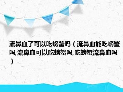 目前大家应该是对流鼻血能吃螃蟹吗,流鼻血可以吃螃蟹吗,吃螃蟹流鼻血吗比较感兴趣的,所以今天小编CC就来为大家整理了一些关于流鼻血能吃螃蟹吗,流鼻血可以吃螃蟹吗,吃螃蟹流鼻血吗方面的相关知识来分享给大家,希望大家会喜欢哦。