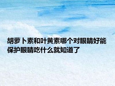 目前大家应该是对胡萝卜素和叶黄素哪一个对眼睛好 保护眼睛吃什么好看了你就知道了!比较感兴趣的,所以今天小编CC就来为大家整理了一些关于胡萝卜素和叶黄素哪一个对眼睛好 保护眼睛吃什么好看了你就知道了!方面的相关知识来分享给大家,希望大家会喜欢哦。
