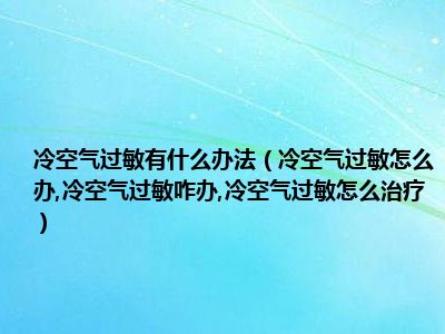 导读目前大家应该是对冷空气过敏怎么办,冷空气过敏咋办,冷空气过敏怎么治疗比较感兴趣的,所以今天小编CC就来为大家整理了一些关于冷空气过敏怎...