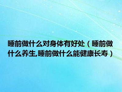 目前大家应该是对睡前做什么养生,睡前做什么能健康长寿比较感兴趣的,所以今天小编CC就来为大家整理了一些关于睡前做什么养生,睡前做什么能健康长寿方面的相关知识来分享给大家,希望大家会喜欢哦。