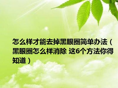 导读 目前大家应该是对黑眼圈怎么样消除 这6个方法你得知道比较感兴趣的,所以今天小编CC就来为大家整理了一些关于黑眼圈怎么样消除 这6个方法...