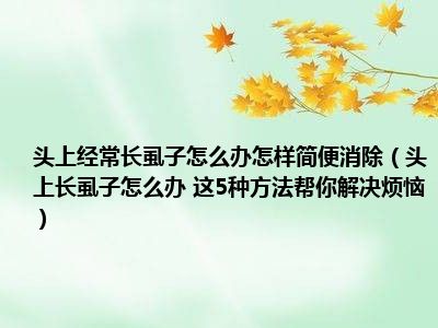 目前大家应该是对头上长虱子怎么办 这5种方法帮你解决烦恼比较感兴趣的,所以今天小编CC就来为大家整理了一些关于头上长虱子怎么办 这5种方法帮你解决烦恼方面的相关知识来分享给大家,希望大家会喜欢哦。