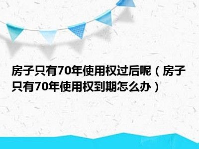 导读 目前大家应该是对房子只有70年使用权到期怎么办比较感兴趣的,所以今天好房网小编CC就来为大家整理了一些关于房子只有70年使用权到期怎么办