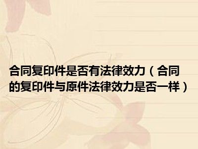 如果复印件和原件核对一致,那么具有一定的法律效力,但是比原件的法律效力低。除非合同签订双方再复印件上重新签字,并注明“经双方协商,该复印件经双方签字后,与原件享受等同效力”。