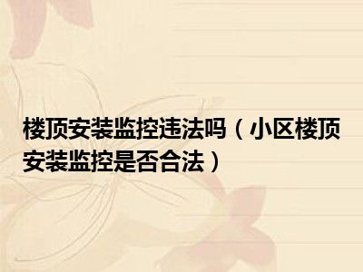 目前大家应该是对小区楼顶安装监控是否合法比较感兴趣的,所以今天CC就来为大家整理了一些关于小区楼顶安装监控是否合法方面的相关知识来分享给大家,希望大家会喜欢哦。