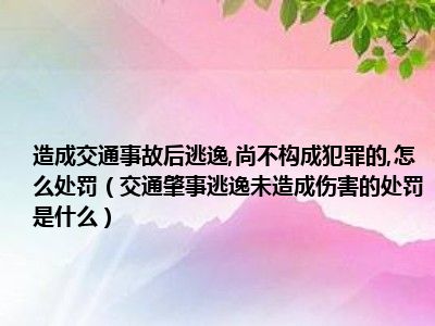 目前大家应该是对交通肇事逃逸未造成伤害的处罚是什么比较感兴趣的,所以今天CC就来为大家整理了一些关于交通肇事逃逸未造成伤害的处罚是什么方面的相关知识来分享给大家,希望大家会喜欢哦。