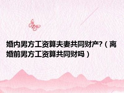 目前大家应该是对离婚前,男方工资算共同财吗比较感兴趣的,所以今天CC就来为大家整理了一些关于离婚前,男方工资算共同财吗方面的相关知识来分享给大家,希望大家会喜欢哦。