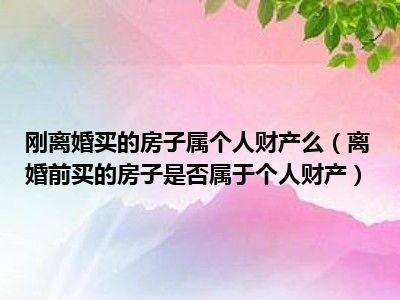 目前大家应该是对离婚前买的房子是否属于个人财产比较感兴趣的,所以今天CC就来为大家整理了一些关于离婚前买的房子是否属于个人财产方面的相关知识来分享给大家,希望大家会喜欢哦。