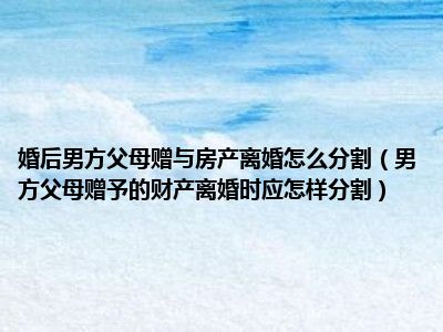 男方父母赠与的财产离婚时如何分割分为以下情况: